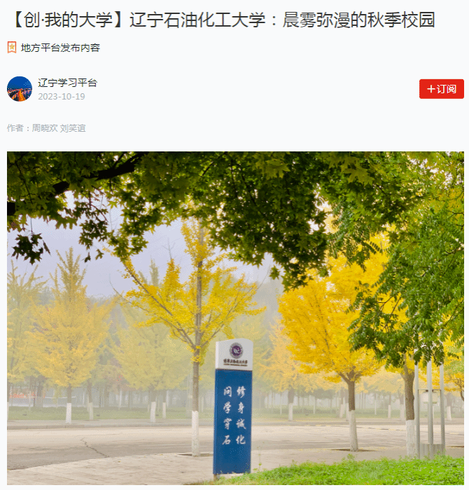 编者按:近日,学习强国辽宁学习平台、辽宁日报·辽望号、人民日报客户端·人民号等媒体平台对我校晨雾弥漫的秋季校园美景进行了宣传报道。现将相关报道转载如下:
