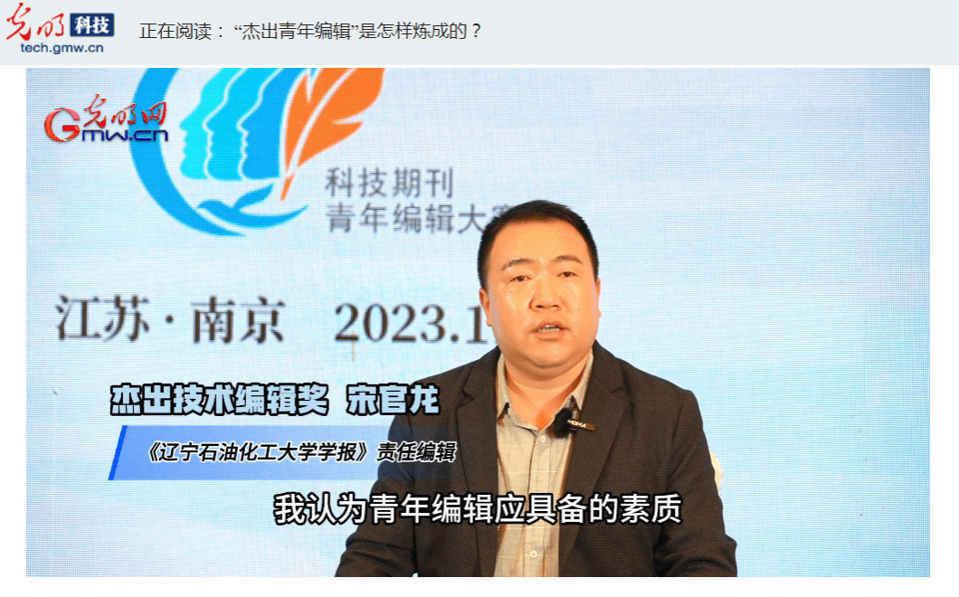 编者按:作为科技期刊编辑队伍中的新鲜血液和生力军,青年编辑的素质能力对于科技期刊的创新发展至关重要。近日,第六届科技期刊青年编辑大赛在江苏南京落下帷幕。本届大赛吸引了1300余人报名参赛,经过全国网上答题海选、视频展示竞技、现场巅峰对决等层层选拔,最终产生10名杰出青年编辑,分属于学术、技术、数字、运营四个类别,我校宋官龙老师获得杰出技术编辑奖项。光明网记者采访了我校获奖教师宋官龙等5位杰出青年编辑,请他们分享在科技期刊编辑工作中的实践经验和工作心得。现将相关报道转载如下: