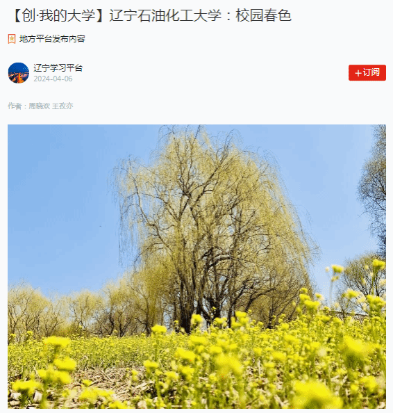 编者按:近日,学习强国辽宁学习平台对我校校园春景以图集形式进行了宣传报道,现将相关报道转载如下: