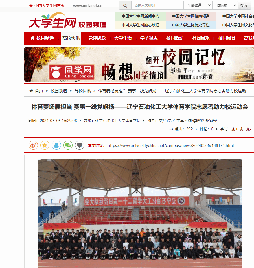 编者按:近日,中国大学生网对我校体育学院志愿者助力校运动会进行了宣传报道。现将相关报道转载如下: