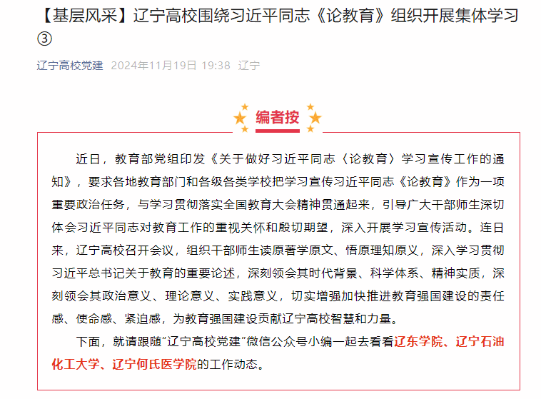 辽宁高校党建微信公众号:https://mp.weixin.qq.com/s/ygKfCgojTjKSaoaF38UCmQ
