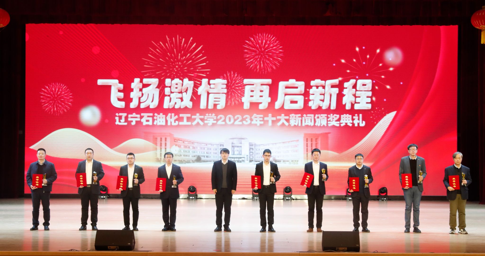 岁序常易,华章日新,学校十大新闻颁奖典礼至今已经成功举办了五届。带着2023年的辛勤耕耘与满满收获再启新征程,全体辽石化大人将继续稳中求进促提升,以进促稳谋突破,争分夺秒抓紧干,在加快推进特色鲜明的一流高水平应用型大学建设道路上赓续前行,奋力书写2024年辽石化大踔厉奋发、飞扬激情、团结筑梦、接续奋斗的崭新篇章!(撰稿人:娄永利 刘桓璐 校对人:陈雪峰 审稿人:雷冬海/张永利 摄)