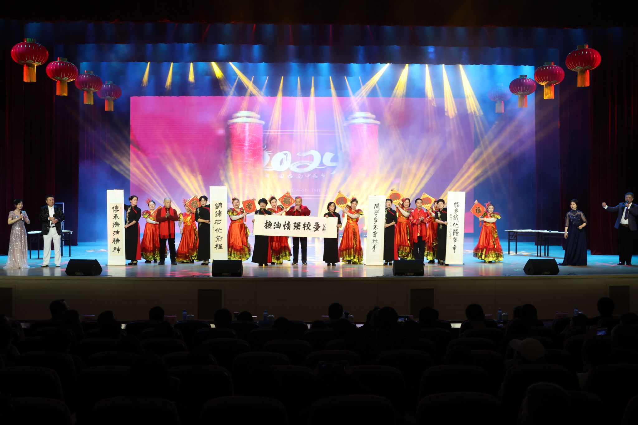 十大新闻发布后,由学校工会组织筹备、师生自编自演的十个精彩文艺节目将颁奖典礼的气氛再次点燃,颁奖典礼在《我们走在大路上》的乐曲声中圆满礼成。
