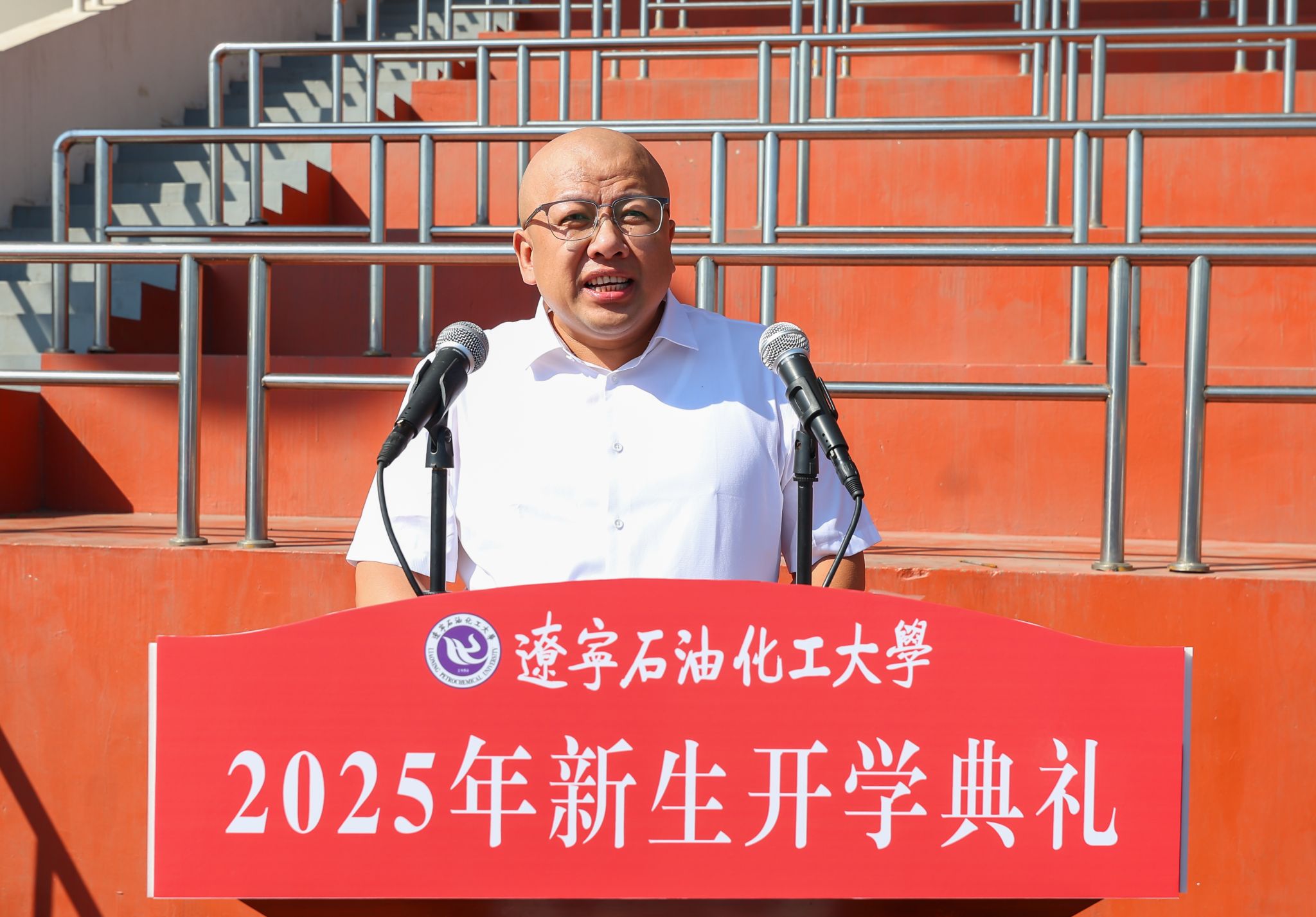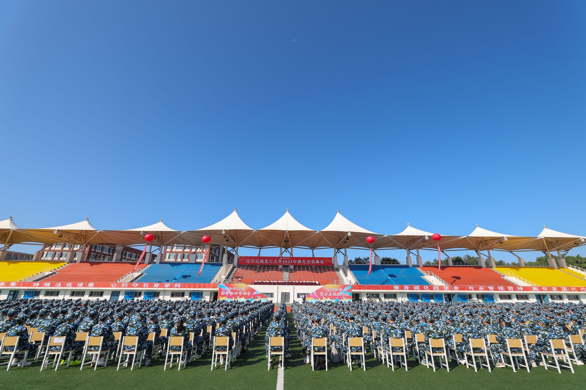 新秋执笔,共绘新程。9月15日上午,学校2025年新生开学典礼在东体育场举行,2025级研究生、本科生和预科生新同学齐聚东体育场,青春蓬勃气息满场涌动。校党委书记霍庆生,校长刘坚,校纪委书记房贵新,副校长刘海峰、王强,杰出校友代表、中国石油辽阳石化分公司党委副书记张洪滨,各职能部门负责人、各学院党政主要负责人、教师代表和全体新生等出席典礼。王强主持典礼。